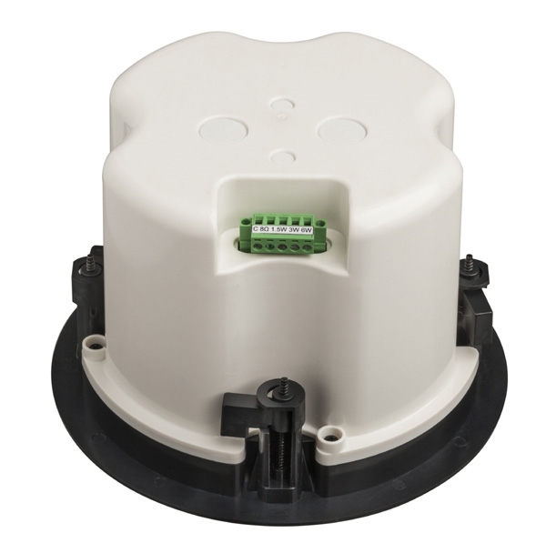 Der 10W starke Lautsprecher ist mit einem 130mm 2-Wege-System mit hochwertigem Hochtöner und einem 100V-Übertrager mit 4 Leistungsanpassungen ausgestattet. Zusätzlich ist auch der niederohmige Betrieb des Lautsprechers möglich. Das schlagzähe Kunststoff-Gehäuse in RAL 9016 garantiert nachhaltige Stabilität. Dank einer innovativen Magnetbefestigung, ist das fein perforierte Lautsprechergitter auch nach der Installation des Lautsprechers in der Decke, bei Bedarf sehr schnell abnehmbar und z.B. durch ein Gitter mit einer anderen Farbe austauschbar. Für zusätzliche Betriebssicherheit sorgen die integrierte Thermosicherung, sowie die Feuchtigkeitsimprägnierung des Lautsprecher-Chassis. Der Lautsprecher ist außerdem mit der Schutzklasse IP 21C gegen die Risiken von Umwelteinflüssen gesichert. Schnelle und unkomplizierte Schraub-Montage, der Anschluss erfolgt über eine stabile Schraubklemme.
