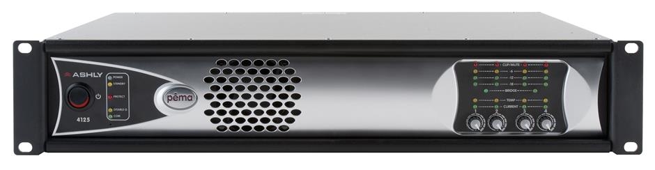 Die Class D Media Endstufe pêma4125.10 (Protea Equipped Media Amplifier) ist eine neuartige Endstufe mit 8 Input Kanälen (8 x stereo Input mittels Cinch/8 x symmetrischer Input mittels Euroblockanschlüssen) inkl. Preamp Funktion, Matrixmöglichkeiten, automatischer Rückkoppelungsunterdrückung, Netzwerkfähig gemäss Standardprotokoll 10/100 von Ashly und vielen weiteren Features. Mit der Protea Software kann Sie leicht bedient und umprogrammiert werden. Sie ist mit 4 x 125 Watt an 100 Volt ausgerüstet.