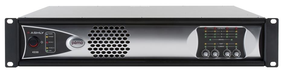 Die Class D Media Endstufe pêma4250.10 (Protea Equipped Media Amplifier) ist eine neuartige Endstufe mit 8 Input Kanälen (8 x stereo Input mittels Cinch/8 x symmetrischer Input mittels Euroblockanschlüssen) inkl. Preamp Funktion, Matrixmöglichkeiten, automatischer Rückkoppelungsunterdrückung, Netzwerkfähig gemäss Standardprotokoll 10/100 von Ashly und vielen weiteren Features. Mit der Protea Software kann Sie leicht bedient und umprogrammiert werden. Sie ist mit 4 x 250 Watt an 100 Volt ausgerüstet.